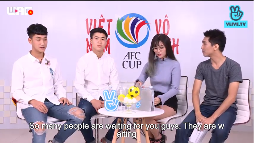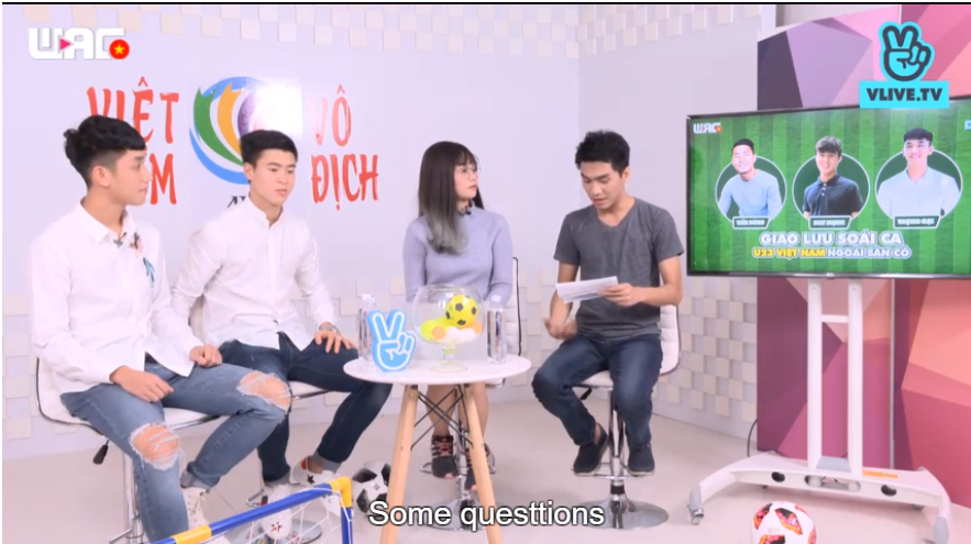 Các MC đặt khá nhiều câu hỏi dành cho hai cầu thủ nhưng cả hai vẫn bình tĩnh và trả lời các câu hỏi liên quan đến bản thân cũng như toàn đội tuyển U23 Việt Nam.