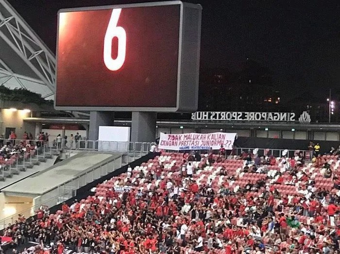 Đây được xem là nguyên nhân khiến các fan Indonesia giương băng rôn “lạ” ở sân Singapore. Tấm băng rôn đã được hạ xuống ngay sau khi nó được dựng lên. Thông điệp được những người hâm mộ Indonesia muốn gửi đi là hy vọng rằng những dòng chữ có phần “đụng chạm” này sẽ làm bừng lên ngọn lửa chiến thắng các cầu thủ Indonesia. Qua đó, đội nhà có thể giành chức vô địch AFF Cup.