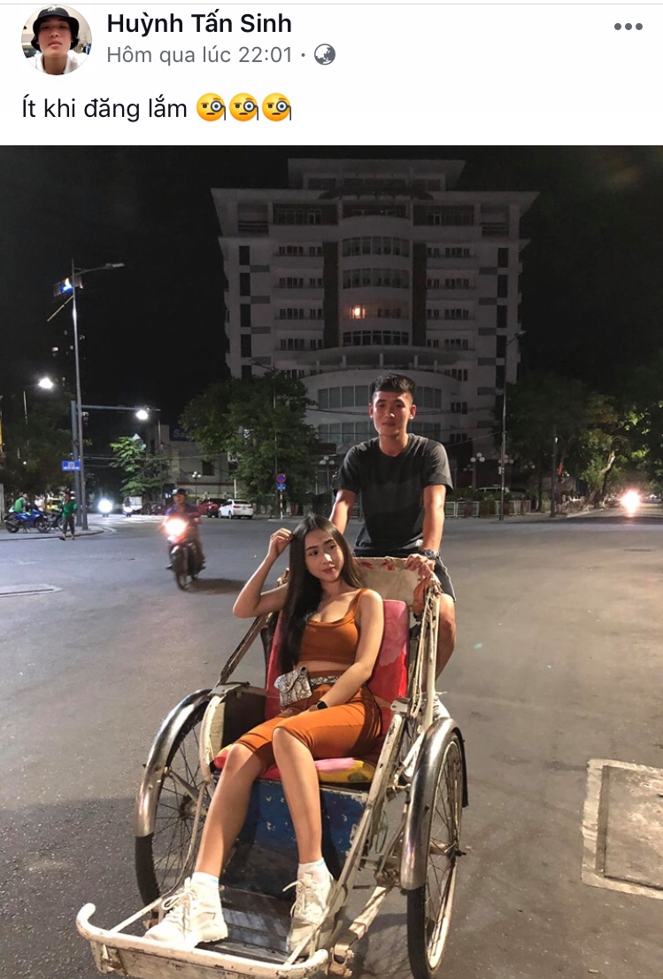 Tối qua 17/6, trung vệ tuyển Việt Nam Huỳnh Tấn Sinh khiến giới cầu thủ Việt xôn xao khi công khai cô bạn gái xinh đẹp trên mạng xã hội Facebook. Cùng với dòng capiton: “Ít khi đăng lắm” và bức ảnh một cô gái xinh đẹp như siêu mẫu đang ngồi trên chiếc xe được Tấn Sinh đèo. Cô nàng có ngoại hình nổi bật là cặp chân dài miên man không thua kém gì siêu mẫu, vòng 1 bốc lửa và khuôn mặt thiện cảm.