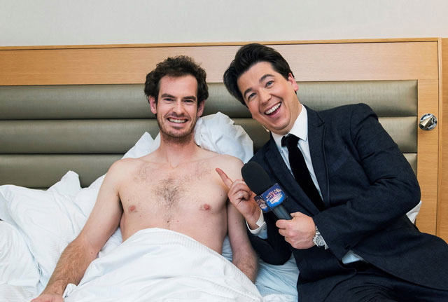 Murray chụp ảnh chung với danh hài Michael McIntyre.