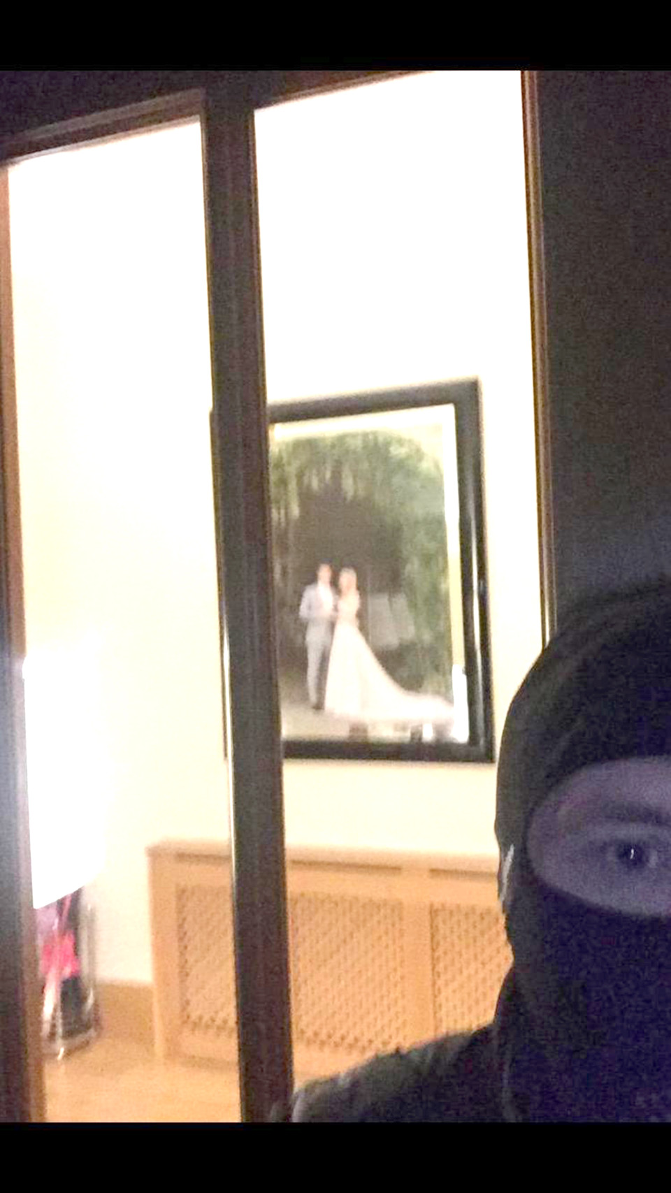 Tên trộm chụp ảnh “tự sướng” bên ngoài ban công bên trong nhà có ảnh cưới của vợ chồng HLV Brendan Rodgers.