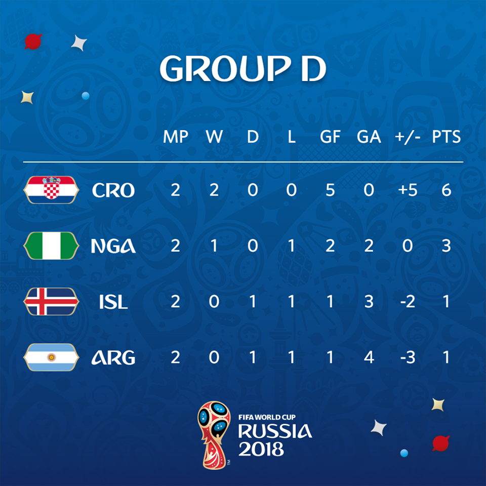 Thất bại 0-2 trước Nigeria đẩy Iceland vào thế khó khi phải thắng Croatia và chờ đợi kết quả trận Argentina - Nigeria. Nếu đại diện châu Phi có 3 điểm thì họ chính thức đi tiếp mà không cần quan tâm đến kết quả trận đấu của Iceland, bởi họ đang có quyền tự quyết.