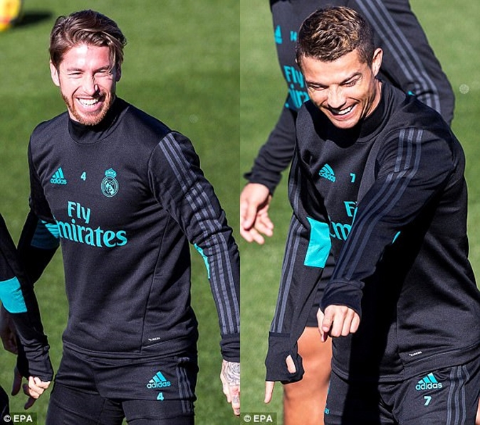 Cả Ramos và Ronaldo đều tỏ ra thoải mái khi tham gia buổi tập chuẩn bị cho trận derby Madrid. Điều này trái ngược hoàn toàn với thông tin trước đó cho rằng giữa 2 người xảy ra mâu thuẫn lớn khi 'kền kền trắng' để thua đậm Tottenham ở Champions League.
