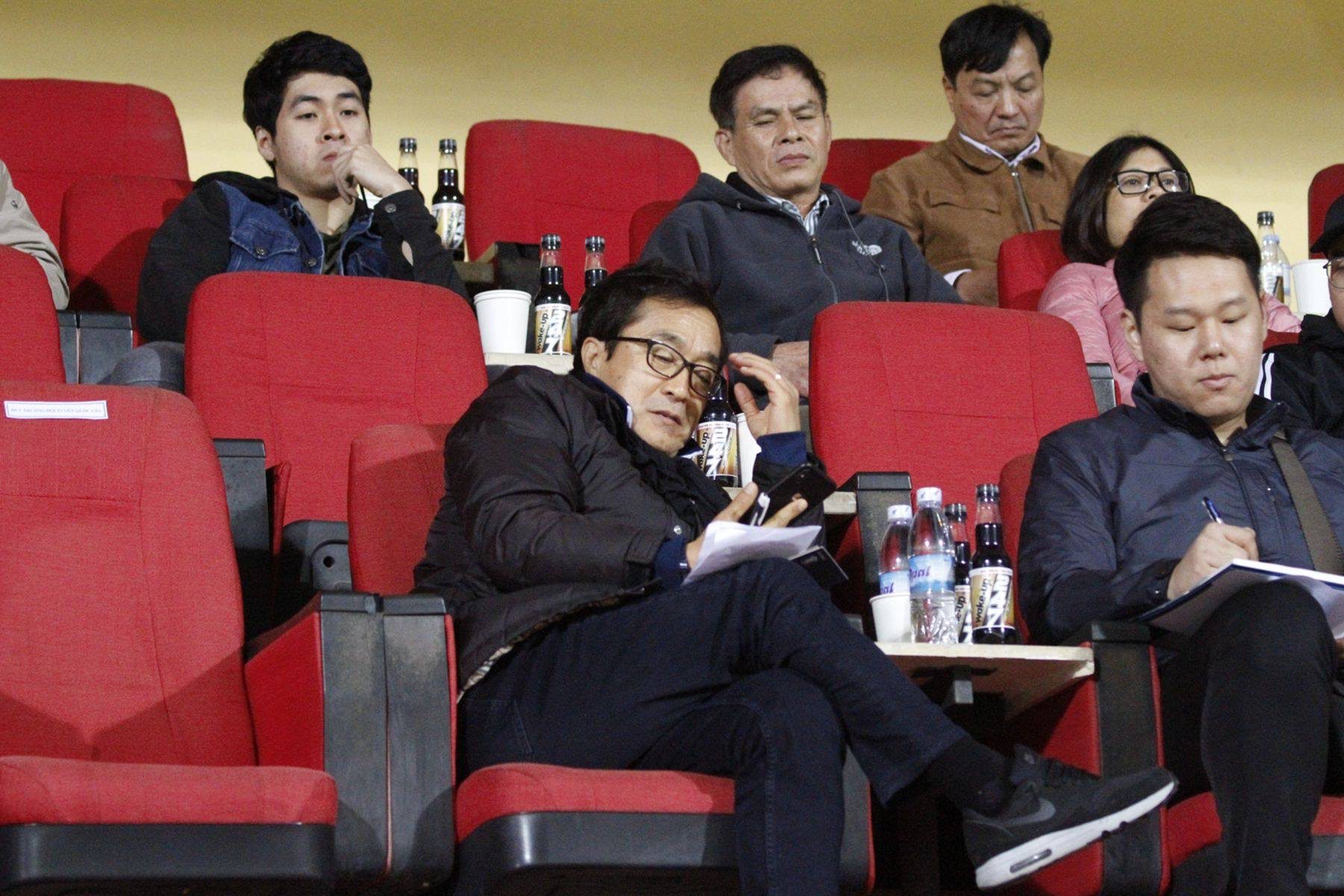 Xuất hiện trên khán đài sân Hàng Đẫy còn có HLV Lee Young Jin - người sẽ dẫn dắt đội U22 Việt Nam đá SEA Games 30. Ông chăm chú theo dõi hai đội thi đấu nhằm tìm ra những cầu thủ tốt nhất. Ảnh: Ngọc Bảo.