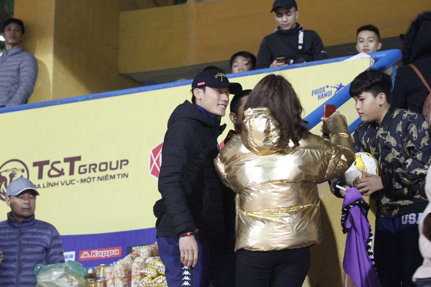 “Thủ môn quốc dân” chụp ảnh cùng những người hâm mộ. Ảnh: Ngọc Bảo.