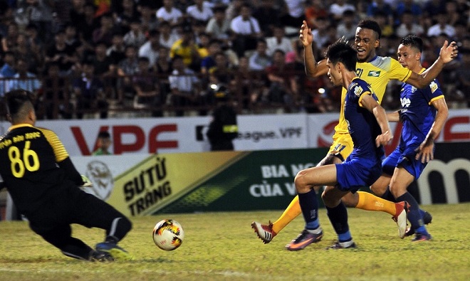 Bùi Tiến Dũng ra sân khá hạn chế dưới màu áo Thanh Hóa. Ảnh: VPF.