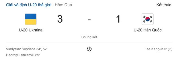 Tổng hợp trận chung kết U20 thế giới: U20 Hàn Quốc vs U20 Ukraine