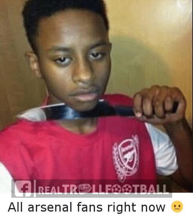 Sau trận đấu, trang Troll Football UK cho đăng bức ảnh một CĐV Arsenal tự kề dao vào cổ, kèm chú thích: “Các CĐV Arsenal ngay lúc này”.