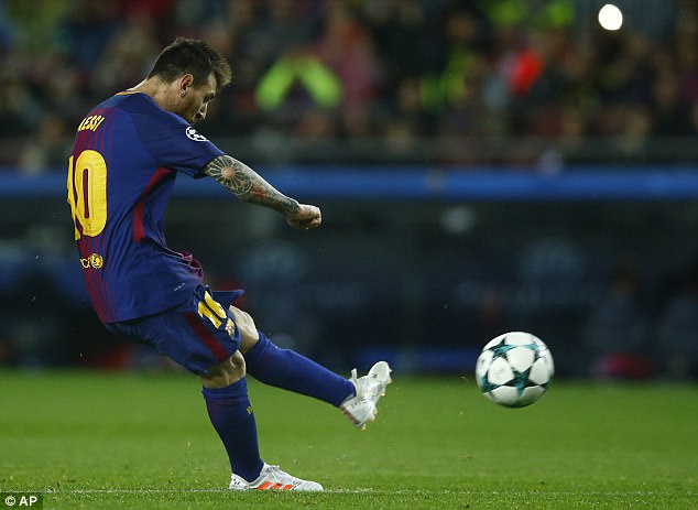 Trong trận thắng Olympiakos 3-0, cùng với hình ảnh sử dụng viên đường glucose, Messi khiến cả châu Âu ngưỡng mộ với cú sút phạt trực tiếp thành bàn. Đó cũng là bàn đầu tiên của “La Pulga” từ phạt trực tiếp trong mùa giải 2017-18, nâng thành tích trong sự nghiệp ở các Cúp châu Âu của anh lên 100 bàn (97 ở Champions League).