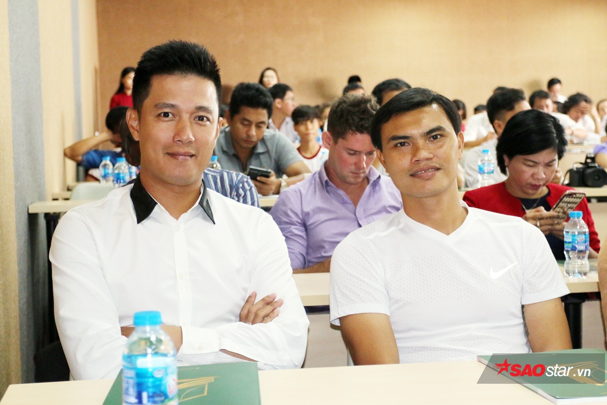 Cựu cầu thủ Lê Sỹ Mạnh và Phan Văn Tài Em cũng đến tham dự buổi ký kết.