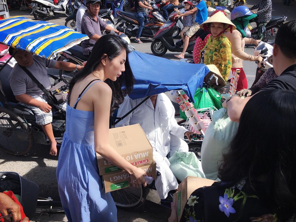 Thủy Tiên được fan khen ngợi khi tặng 200 triệu cho công nhân nghèo ăn Tết. (Ảnh FBNV)