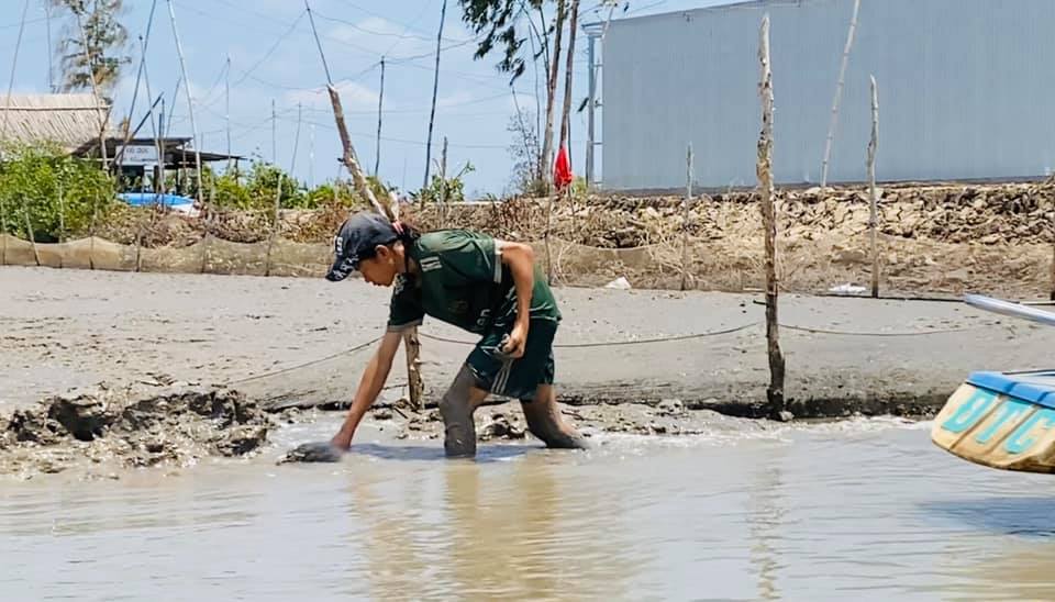 Bà xã Công Vinh bật khóc khi thấy bà con miền Tây mò cua bắt ốc giữa cái nắng cháy da. (Ảnh FBNV)