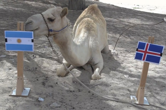 - Video: Lạc đà dự đoán Argentina sẽ hạ gục Iceland. Nguồn: Gulf News.
