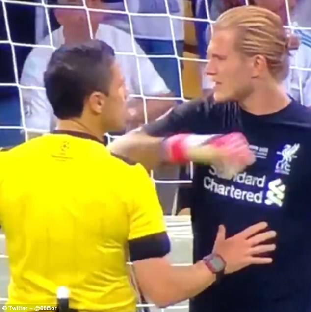 Karius phàn nàn với trọng tài nhưng không được giải quyết.