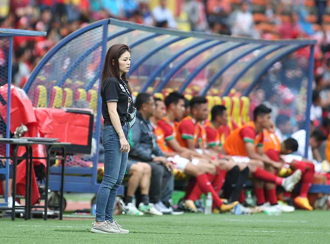 Hình ảnh nữ trưởng đoàn U22 Thái Lan “buồn” biết được đội bóng xứ chùa vàng đã có một trận đấu không được tốt trước U22 Indonexia (Hòa 1-1)