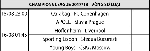 Đêm nay, vòng sơ loại thứ 3 của UEFA champion league sẽ diễn ra, sau đây là lich thi đấu