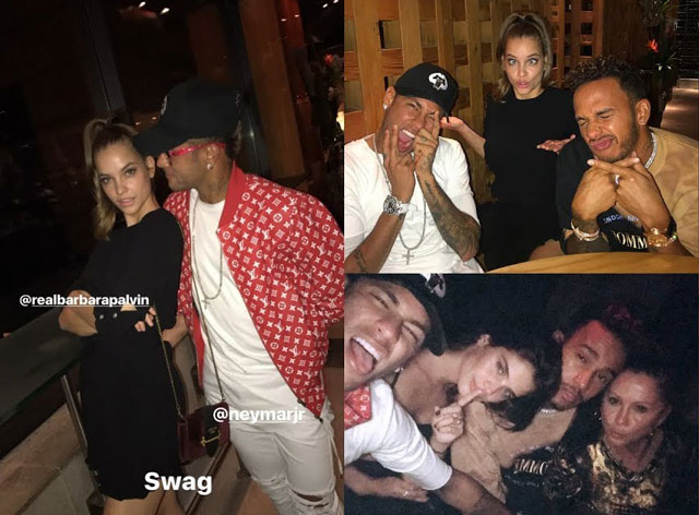 Tại đây, chân sút người Brazil đã được Lewis Hamilton giới thiệu với Barbara Palvin ở một quán bar. “Mê mệt” trước nhan sắc của siêu mẫu Victoria's Secret, cộng thêm việc vừa mới chia tay với cô bạn gái Bruna Marquezine nên Neymar đã không ngại ngần làm quen trước khi đưa Palvin đến một căn hộ cao cấp để “tâm sự” thêm.