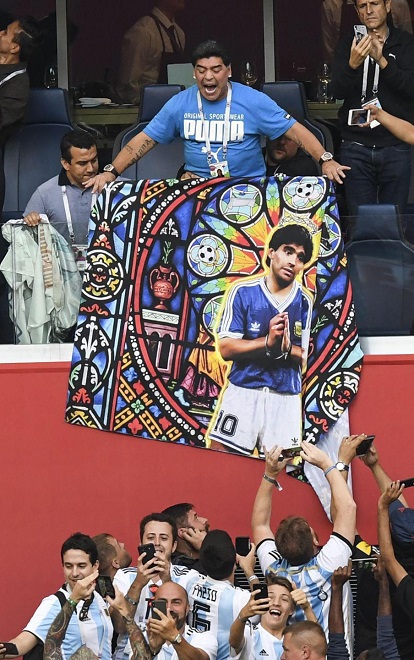 Huyền thoại Diego Maradona tỏ ra phấn khích trước chiến thắng của đội nhà. Ảnh: The Sun.
