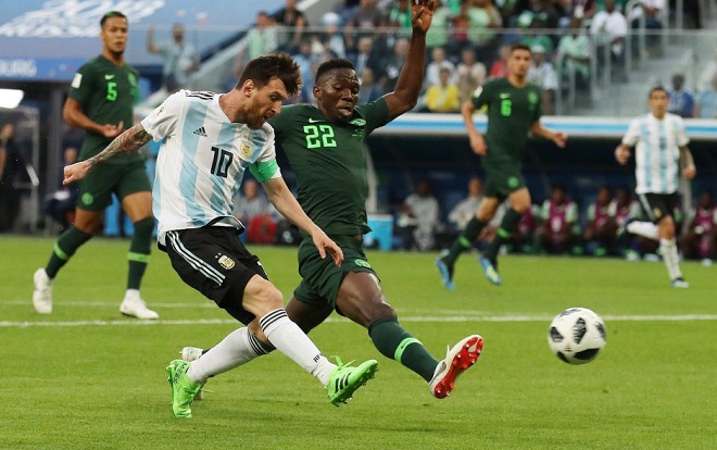 Mascherano là người mắc lỗi dẫn đến tình huống phạt đền dành cho Nigeria. Ảnh: Fifa.com.
