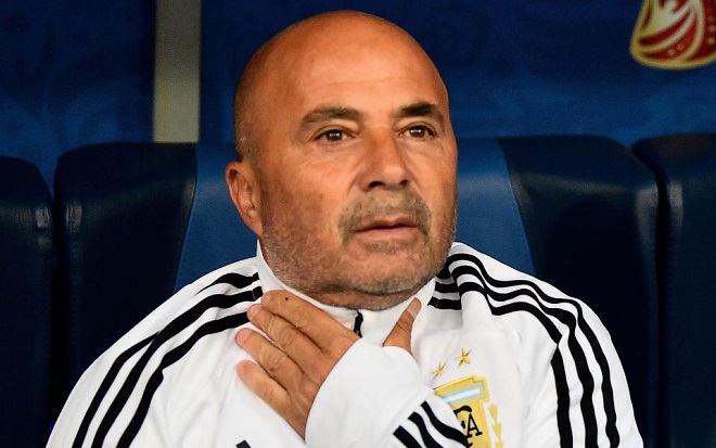 HLV Sampaoli rưng rưng trên băng ghế chỉ đạo. Ảnh: The Sun.