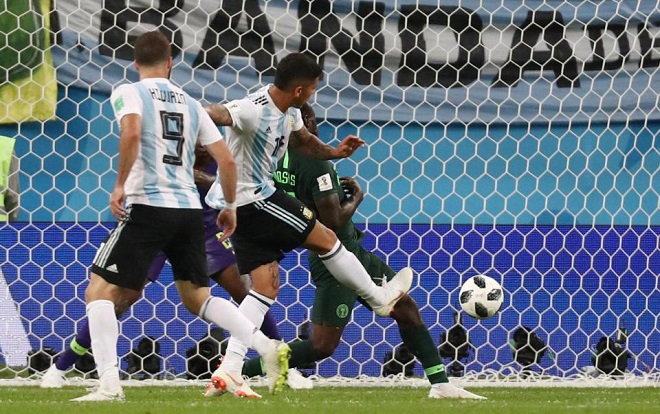 Tuy nhiên, ở vào thời điểm tuyệt vọng nhất, hậu vệ Rojo mang về bàn thắng quý hơn vàng dành cho Argentina. Ảnh: AP.