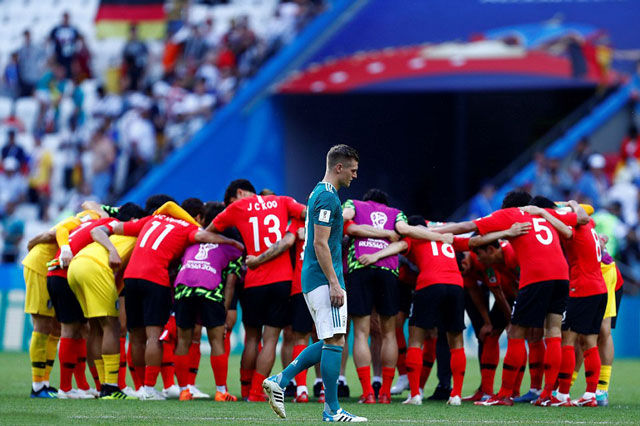 Toni Kroos cay đắng bước qua chỗ ăn mừng của các cầu thủ Hàn Quốc.
