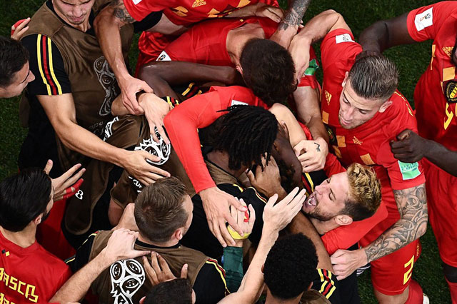 Các cầu thủ Bỉ ăn mừng bàn thắng vào lưới ĐT Nhật Bản.