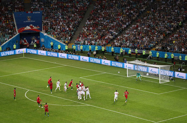 Siêu sao Cristiano Ronaldo khiến cả thế giới phải nhắc đến tên anh bằng một pha đá phạt tuyệt đỉnh vào lưới Tây Ban Nha.