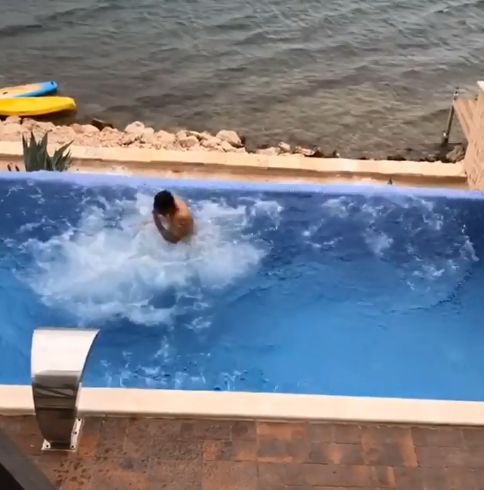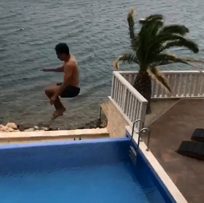 Điều đáng nói là hậu vệ điển trai người Đức nghịch khá nguy hiểm, đó là phi thân từ tầng 2 nhảy thẳng xuống bể bơi. “Đừng cố gắng làm theo ở nhà nhé!”, Hummels không quên cảnh báo các fan.