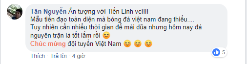 Trận ra mắt hoàn hảo của Tiến Linh khi “vua dội bom V.league 2018” ghi 1 bàn thắng và thể hiện bản thân xứng đáng được đá chính, đủ khả năng cạnh tranh sòng phẳng với “lão tướng” Anh Đức.