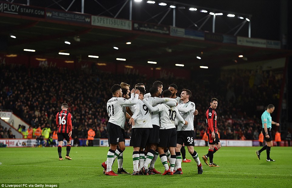 Cuối hiệp 1, tiền vệ Salah kết thúc pha solo đẹp mắt bằng cú sút tung lưới Bournemouth nâng tỉ số lên 3-0. Với bàn thắng này, chân sút người Ai Cập trở thành cầu thủ đầu tiên ghi được 20 bàn cho Liverpool trước Giáng sinh kể từ thời của huyền thoại Ian Rush ở mùa giải 1986/87. Bên cạnh đó, Salah tiếp tục củng cố vững chắc ngôi vị số 1 trên bảng xếp hạng dành cho những chân sút ghi được nhiều bàn thắng nhất giải đấu.