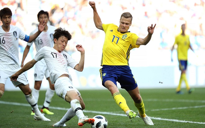 Một đại diện khác châu Á cũng nhận thất bại tức tưởi từ công nghệ chính là đội tuyển Hàn Quốc. Cũng giữa thời điểm thế trận đang diễn ra một cách cân bằng, hậu vệ Hàn Quốc có pha truy cản cầu thủ Thụy Điển ngay trong vòng cấm địa.