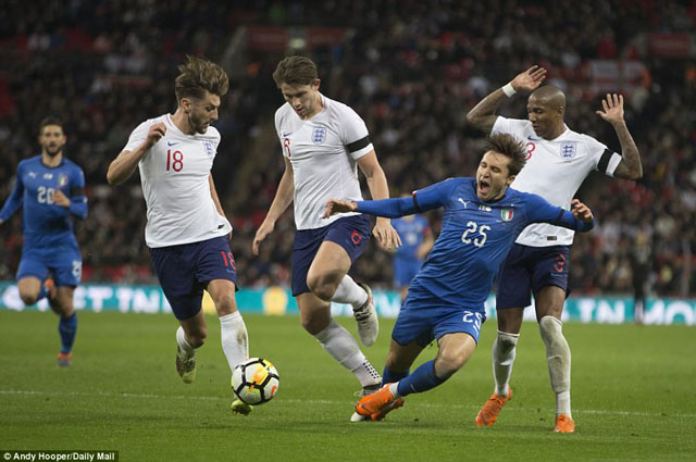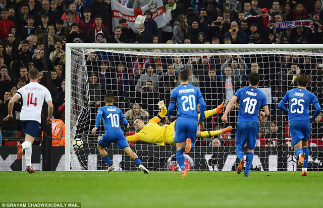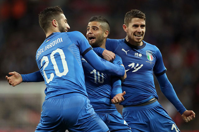Trên chấm 11m, tiền vệ Lorenzo Insigne dễ dàng đánh bại thủ môn Jack Butland để ấn định tỷ số hòa 1-1 cho ĐT Italia.