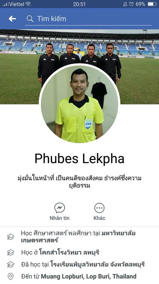 Có lẽ, trọng tài Phubes Lekpha sẽ có một ngày làm việc “vất vả” khi liên tục bị các CĐV Việt Nam nhắn tin chỉ trích.