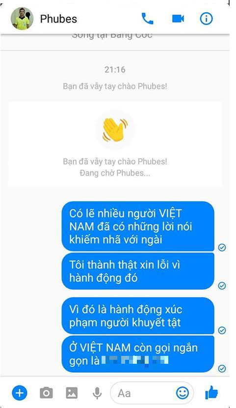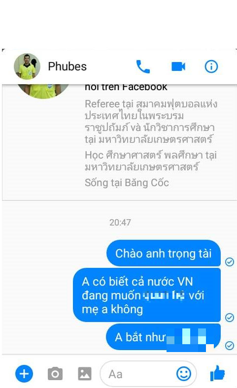 Một số CĐV rất tâm lý “sợ” vị trọng tài này không hiểu được tiếng Việt nên cả dùng tiếng Thái và tiếng Anh để nhắn tin.