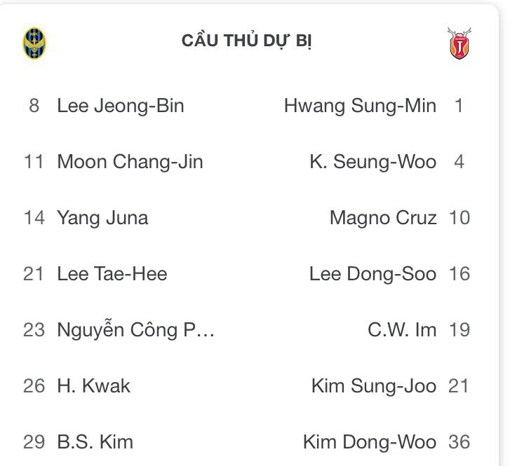 Như vậy, CLB Incheon United đã công bố đội hình ra sân. Tiền đạo Nguyễn Công Phượng đã không có tên trong đội hình chính thức. Công Phượng đá dự bị.