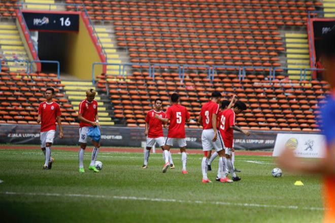 *Hiệp 1 của trận đấu: Campuchia là đội giao bóng trước