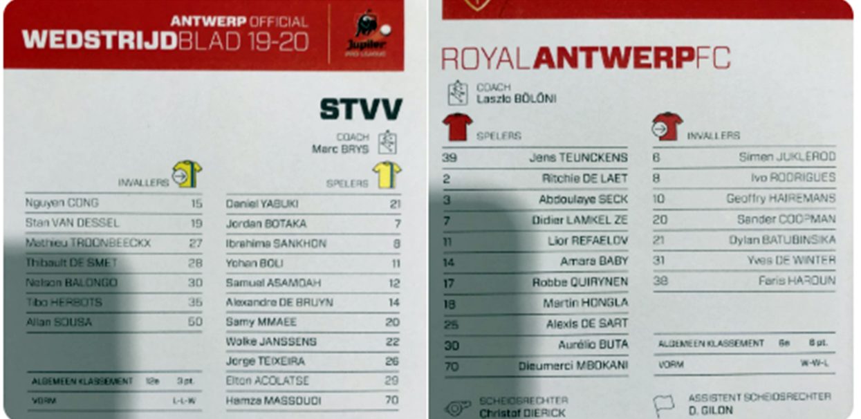 Danh sách thi đấu trận Sint-Truidense và Royal Antwerp.