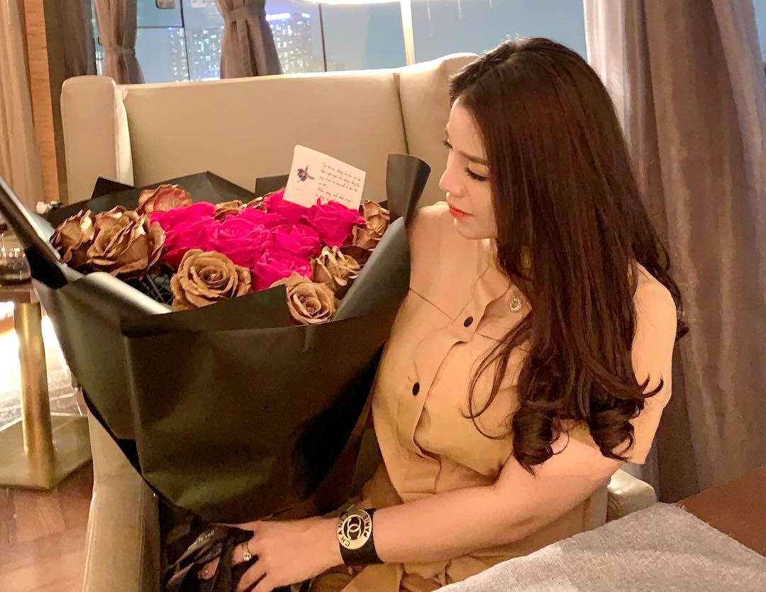 Không chỉ nói, trung vệ của Viettel còn tặng cho người yêu một buổi tối sinh nhật đầy ý nghĩa. Anh chàng cất công chuẩn bị 22 bông hoa hồng tượng trưng cho tuổi 22 rực rỡ của Khánh Linh. Kèm với đó là chiếc vòng cổ long lanh, tinh tế. Cả hai đón sinh nhật trong một nhà hàng đơn giản nhưng sang trọng.