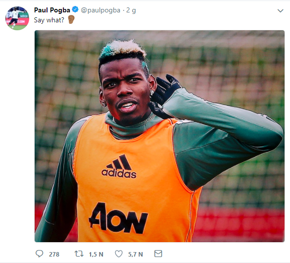 Sau khi xuất hiện thông tin này, Pogba đã cho đăng tải trên Twiter một bức ảnh kèm dòng tweet “Say What”. Điều này chứng tỏ, tiền vệ người Pháp cho rằng, những phát biểu của HLV Pep Guardiola chỉ là bịa đặt và người đại diện của anh chưa bao giờ nói chuyện với vị huấn luyện viên này.
