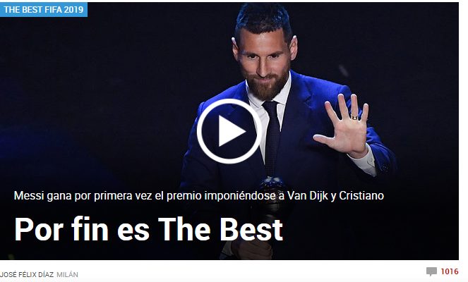 Bên cạnh đó, tờ báo này cũng cho rằng chiến thắng của Messi dù không quá bất ngờ, nhưng vẫn còn đôi chút tranh cãi. Bởi lẽ năm 2019, Messi chỉ vô địch La Liga, trong khi Van Dijk, người xếp thứ 2 đã vô địch Champions League và có một mùa giải tuyệt vời với Liverpool.