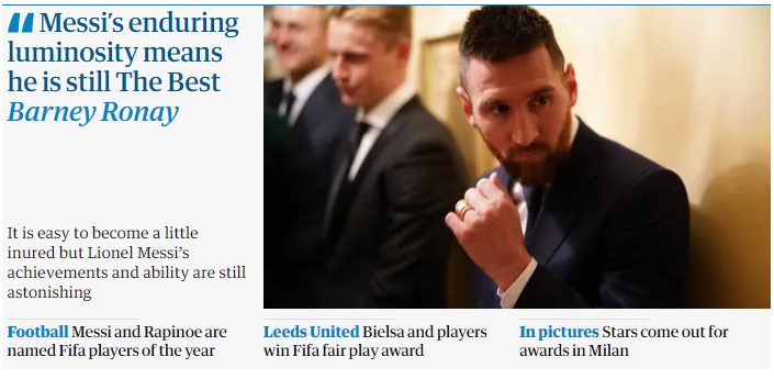 Trong khi đó, tờ Independent và The Guardian khẳng định, chiến thắng của Messi hoàn toàn xứng đáng bởi anh là người xuất sắc nhất.