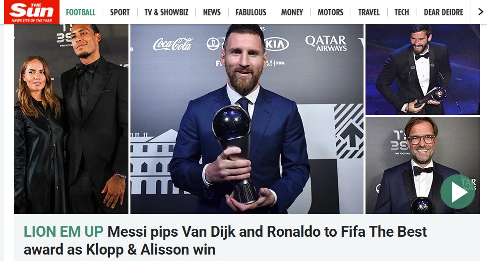 Hàng loạt các tờ báo lớn ở Anh lại đưa ra quan điểm trái chiều. Dù vẫn dành những lời khen ngợi Messi nhưng hai tờ Daily Mail và The Sun cho rằng, sẽ là hợp lý hơn nếu Van Dijk chiến thắng ở FIFA The Best 2019 bởi những thành tích nổi bật mà ngôi sao Hà Lan đã giành được cùng CLB Liverpool và ĐTQG.