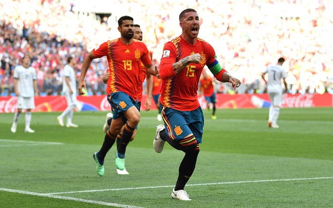 Phút 12, trong một nỗ lực lao vào đón quả treo bóng bên phía cánh phải, trung vệ Sergio Ramos tỏ ra tinh quái bằng tác động dẫn đến tình huống đá phản lưới nhà của hậu vệ ĐT Nga, Sergei Ignashevich. Tây Ban Nha tạm vươn lên dẫn trước 1-0.