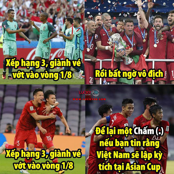 Song song, một loạt ảnh chế Việt Nam vô địch cũng được cư dân mạng “chế” khá hài hước và liên tưởng đến câu chuyện Bồ Đào Nha xếp thứ 3, sau đó vô địch Euro 2016.