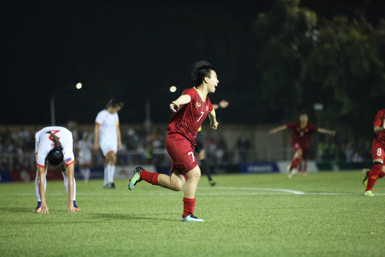 Tuyết Dung toả sáng với bàn thắng ấn định tỉ số 2-0 cho đội bóng áo đỏ trước Philippines. Ảnh: Minh Dân