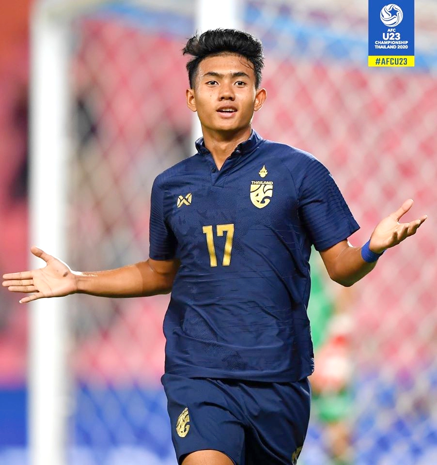 Cầu thủ trẻ nhất tại VCK U23 châu Á tỏa sáng trong trận ra quân của U23 Thái Lan. (Ảnh AFC)