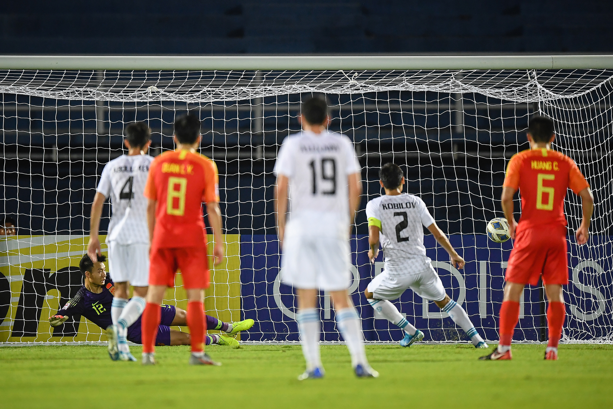 Uzbekistan ghi bàn thắng từ chấm phạt đền.