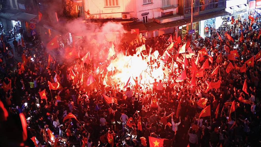 Người hâm mộ Việt Nam đổ xô ra đường ăn mừng chiến tích lịch sử.