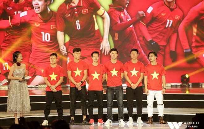 Tối 4/2, U23 Việt Nam cũng được vinh danh ở hạng mục Đại sứ truyền cảm hứng tại gala trao giải WeChoice 2017. 6 cầu thủ tiêu biểu của U23 Việt Nam gồm: Nguyễn Quang Hải, Bùi Tiến Dũng (thủ môn), Nguyễn Văn Toàn, Đỗ Duy Mạnh, Bùi Tiến Dũng (trung vệ), Nguyễn Công Phượng đến nhận giải thưởng.